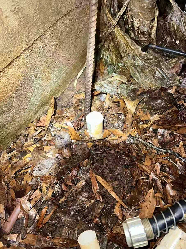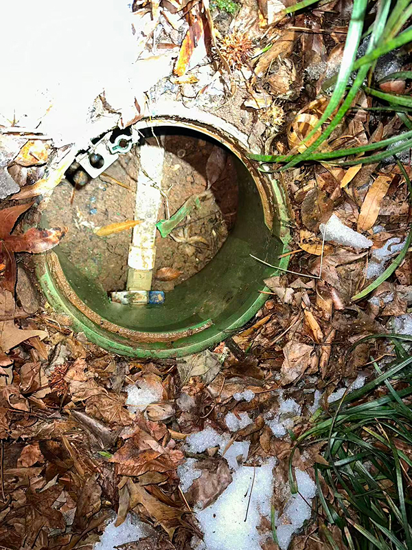 We received an emergency call reporting water flooding the front yard. Upon arrival, we found that the customer’s outdoor garden irrigation faucet PVC pipe had frozen and burst. Once the ice thawed, water started flowing everywhere.