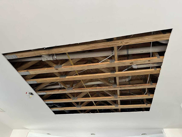 Using a thermal camera, we identified the leaking area and cut open the ceiling.