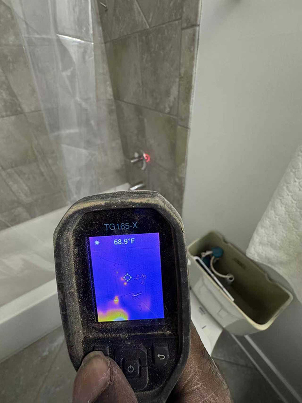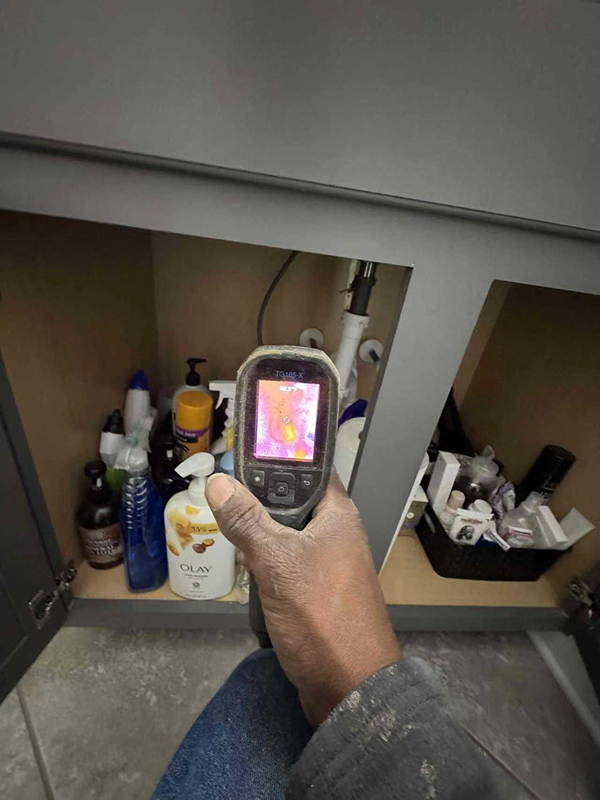 Using a thermal camera, we traced the source of the leak and determined it was coming from the master bathroom sink.