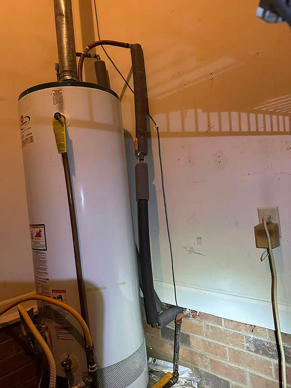 Upon inspection, we found that the hot water pipe connected to the water heater had no insulation and had frozen and burst.