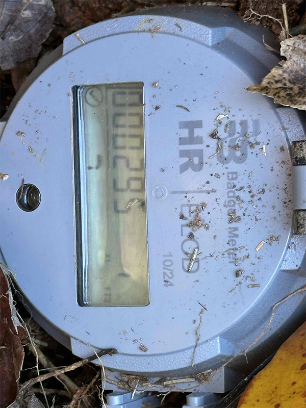 First, we checked the water meter to Identify the approximate location of the leak. After shutting off the main shut off valve inside, the meter showed it was leaking 0.29 gallon per minute, so the leaking location must be some where between the meter and the house.