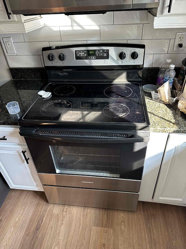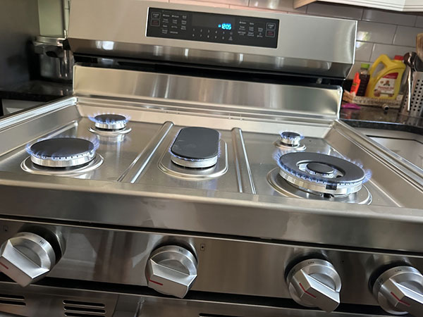 We opened the valves, purged the air, connected the new gas cooktop, and conducted ignition testing.