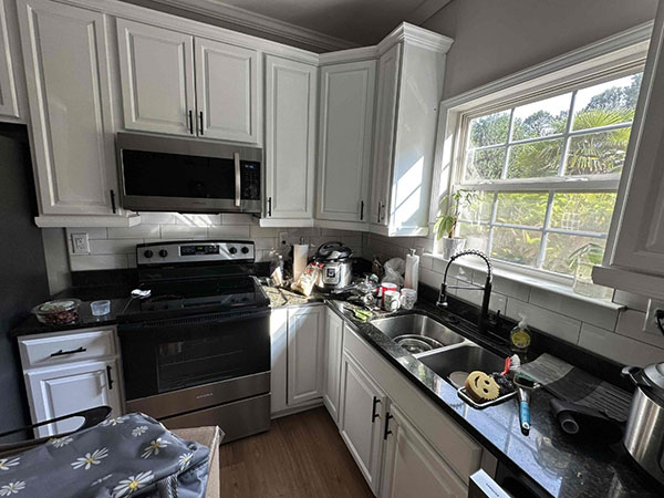 We opened the drywall behind the kitchen, drilled holes through the studs, installed black iron gas pipes, secured them to the studs, and re-covered the drywall.