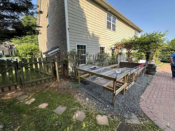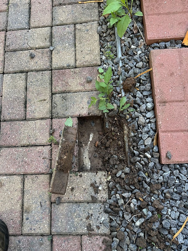 在准备开挖之前,发现patio地砖的下面是厚厚的水泥,客户不想把这个水泥全部破坏掉
