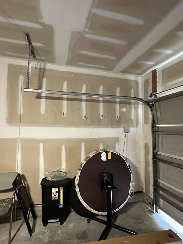 Option 2: Drill through the garage and bring the new gas line indoors. Open the drywall from the garage to the attic, run the gas line through the attic to a point above the kitchen, then open the drywall to bring the gas line down into the kitchen. This plan would require opening a large amount of drywall on both the first and second floors, and all drywall repairs would need to be handled by others.