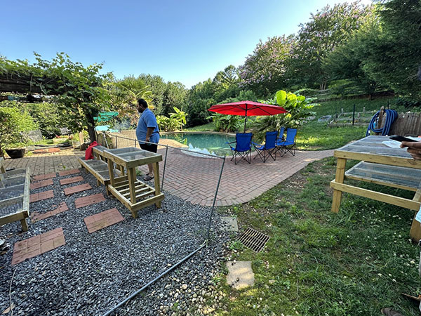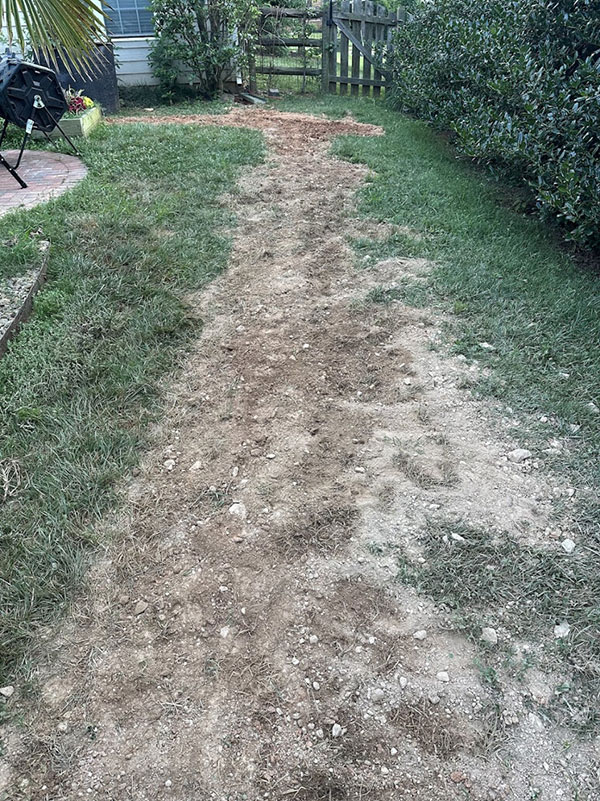 我们准备设计新路线,绕开水泥板,绕着游泳池挖沟排线