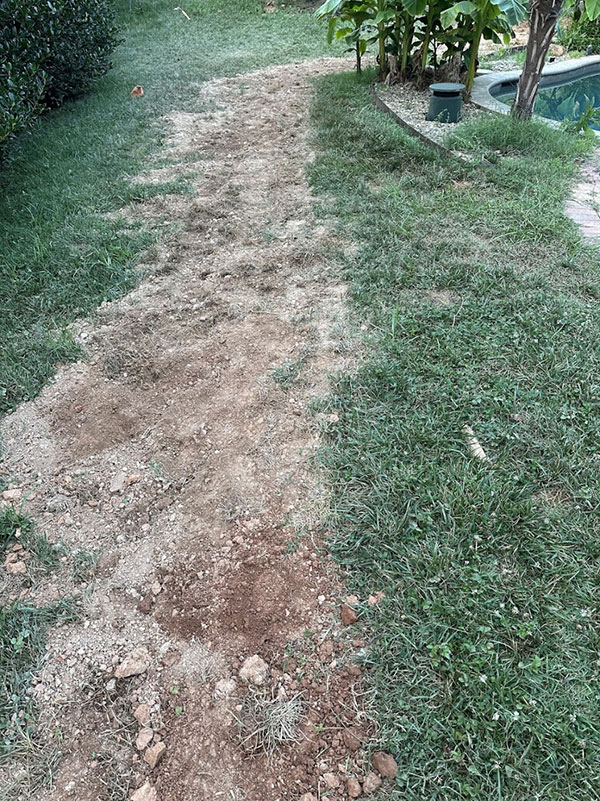 We decided to design a new route to avoid the concrete slab by trenching around the swimming pool.
