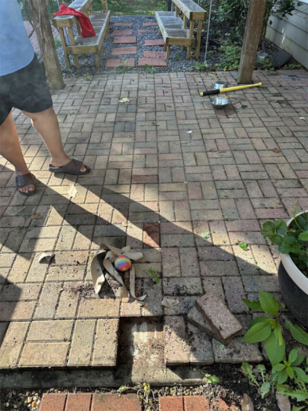 Before beginning excavation, we discovered that there was a thick concrete slab beneath the patio tiles. The client did not want to destroy this entire slab.